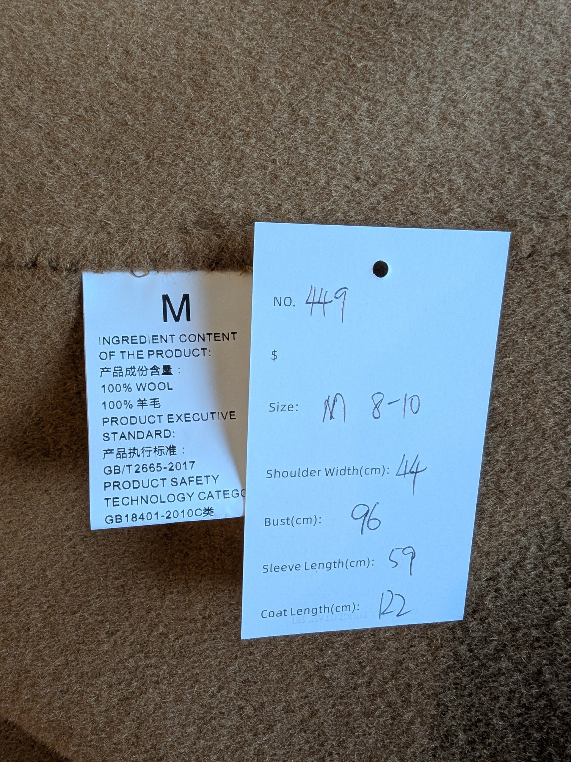 Brand New Pure Wool Coat FREE SHIPPING High Quality Wool 449 Size S M